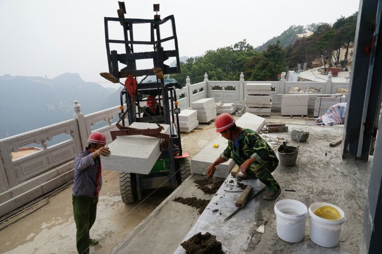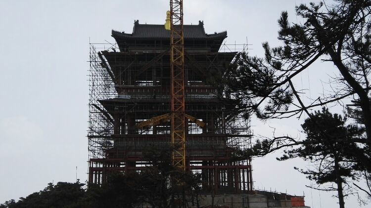 拆除塔吊,塔吊的拆除因?yàn)槠嚨鯖]法運(yùn)到山頂,全靠人力,威脅系數(shù)比較高,想了很多辦法,出了幾次險(xiǎn)情,把叉車都砸扁了,幸虧沒傷人,祖師爺保佑!