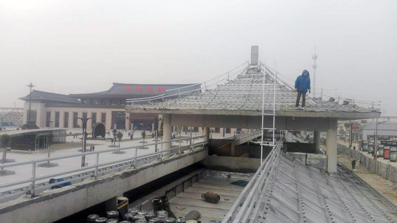 11月24日我公司承接的鄭徐高鐵開封北站仿古鋁瓦屋面項目進展到80%啦!現在正在緊張施工,爭取12月10日前全面完工!