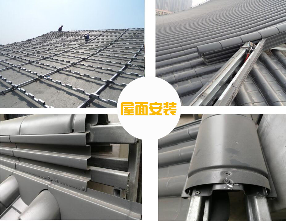 仿古瓦安裝施工方便,仿古金屬瓦是采用螺絲,焊接表面鋪設龍骨,非常簡單,一般仿古瓦廠家都會有專業的技術在施工現場指導,10分鐘即可教會現場的工人施工。