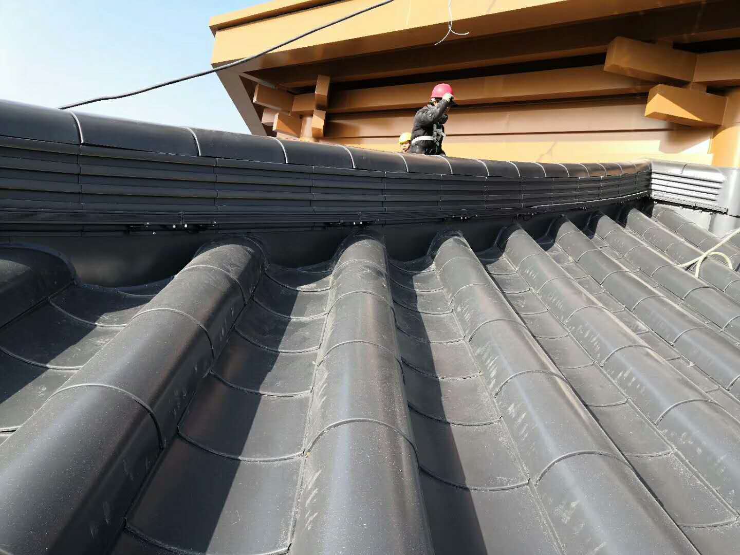 西安市渼陂湖公園紫煙閣鋁瓦屋面完美收官.