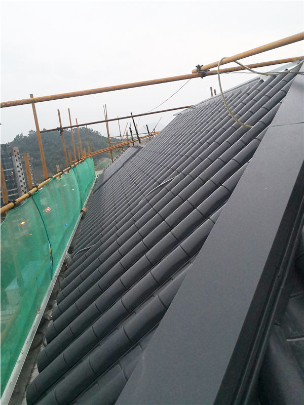 深圳平樂骨傷科醫院屋面金屬瓦工程安裝完成,主要采用東申分體瓦,面積約3800平方,新中式仿古風格,深灰顏色;金屬屋面系統,干掛瓦形式安裝,選擇東申鋁瓦,感謝骨科醫院的信任和支持!