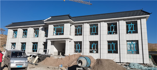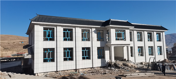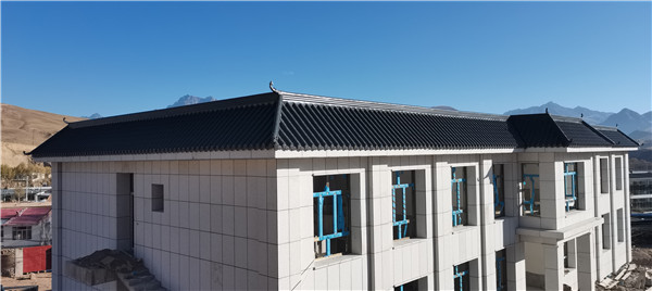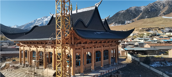 青海祁連縣冰溝清真寺屋面仿古金屬瓦工程安裝完成;
