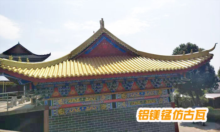 古建筑是中國文化的結晶,大家都鐘愛古建筑。而我們對古建筑的了解,大部分都是從古裝劇里得來的。深宮庭院,和那個時代人們的氣質很配。但是,隨著時代的發展,留存下來的完整的古建筑越來越少了。人們為了重現古建筑的美,只能建大量的仿古建筑來滿足大家的藝術審美。所以,不少古建筑都在加緊改造或新建中。鋁鎂錳仿古瓦可以在一定程度上抬高古建筑的顏值,那么我們來看看它的好處。